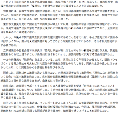 向原氏の鹿児島県知事へ出馬表明の記事が南日本新聞のトップになりました〜